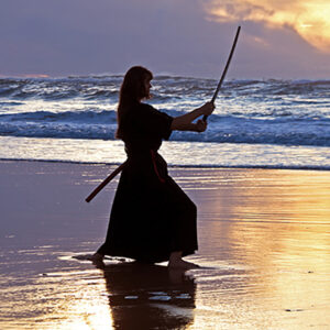 Young,Samurai,Women,With,Japanese,Sword(katana),At,Sunset,On,The